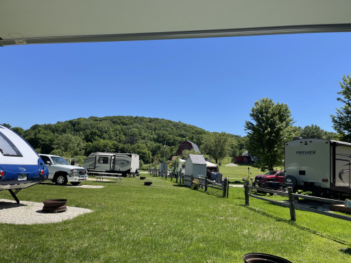Awesome campground! Very clean and well maintained. Water and power are relatively close to all the sites and management has extra hoses and power cords to use if you are short. Plenty of trees everywhere, creek runs through the property with good fishing, dog run area, frisbee golf, kid activities, and close to Mystery Cave State Park.