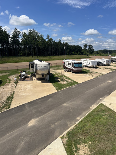 My site had the sewer connection way too high (12” or more above the ground)-that will not work well for a motor home. 50 amp service available and nice concrete pads. A very clean park with mostly new facilities. We were there Jan. 1st so the ground was soggy. Overall, nice people and a good experience.