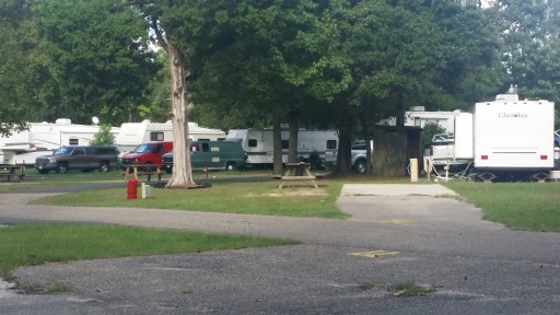 Nice shady campground staff helpful full hook up $40.00 per night love the trees. Fire pit would get them another star