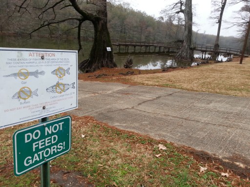 Just the nicest place. The ranger was extremely friendly. Clean facilities as advertised. We stayed 2 nights. Met a guy who fished a 20lb catfish out of Alligator Lake...We fished & canoed & hiked the great trails around the lake. No swimming, alligators. Very quiet, loved it.