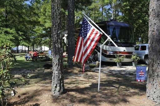 Did an extended stay. Reservations were made well in advance but the site was first come first serve. We had the option of 2 short sites too small for our rig and impossible to get into or a longer site also difficult to back into due to tree at the entrance of site. Made it in, had to park our truck in our site as there’s no room to park vehicles. Site was full of leaves/broken tree branches; no maintenance crew keeping up the campground; no showers; no trash pickup, very primitive. Getting out was just as much a nightmare as getting in, levelers dragged into the landscaping due to being so unlevel at end of concrete pad. Exit we had to take was one lane dirt road with little gravel. To avoid a truck parked on the lane went too close to shoulder which turned out to be a deep ditch full of leaves. Rig took a bad lean and looked like it was going on it’s side; truck wheels spun in the mud so needed 4x4 to get out. Restaurant had good food but, won’t go back or recommend for big rigs.