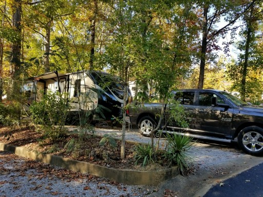 Stayed one night on way to Alabama. Very nice park close to restaurant and shops. Some spots are small but park is well kept. Would have been 5 stars but they do not have picnic tables at the sites, witch is odd to me.