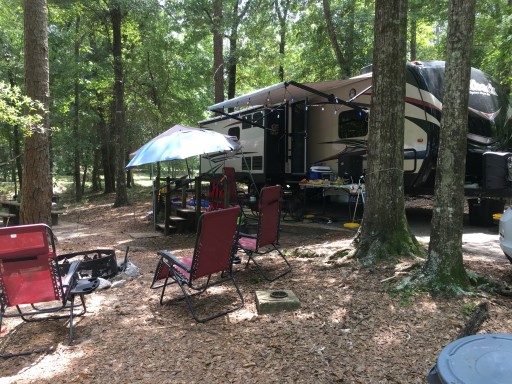 Nice paved level lots, plenty of shade. Park kept clean, trash cans offered to each camper and is picked up by the camp workers. Full hook up available including 50amps. Dog friendly. Nice large lake for all sports including a water park built into the lake. Reasonable pricing to stay !