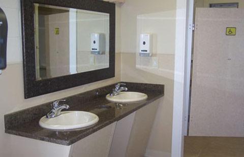 Bathrooms clean. Friendly staff. Good pizza . Ideally located. Pancake breakfast great.