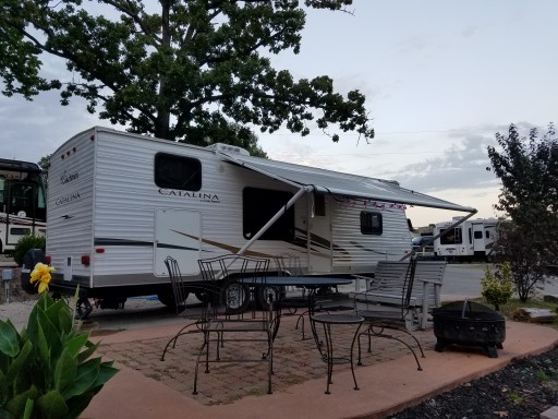 We upgraded to a luxury site for my birthday and it was wonderful to have a nice large patio work nice landscaping, a fire pit, and a glider! But all the sites looked nice. Friendly staff. Even picked up trash for us and delivered fire wood! Free pancakes in the mornings. Very clean restrooms. Nice park and pool. We'll be back! :-)
