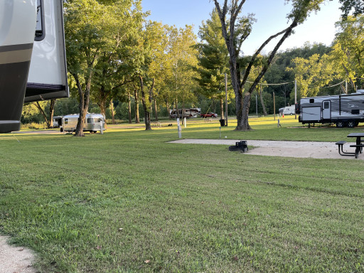 This is a newer park and it is great! It is nice and quiet and the staff is friendly and very helpful. Has a fire pit and picnic table at each site, a public gathering patio with a propane fire pit with games, corn hole, basketball court, it is by Bull Creek and they have tubes you can float the creek. It is 4 miles north of Branson and approximately 30 miles south of Springfield. Will be back!
