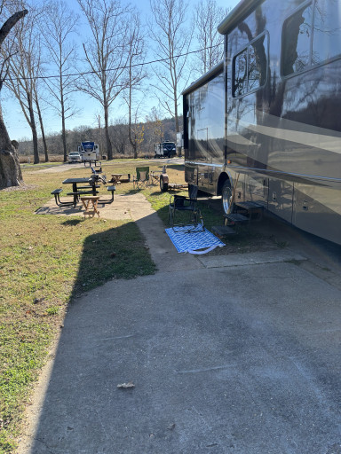 Probably the better campground in the immediate Branson area. Had my doubts as we approached but that all changed as we pulled in. Gate requires code on each entry. Grounds are clean, sites are somewhat small b ut not crammed together. Small gas station just outside the park. We will return on each trip to Branson. Each site has concrete pad. Site 11 pad is too narrow for my Vibe and the slide hit the water spigot. All water spigits are frost proof and stand about 24 inches above ground.
