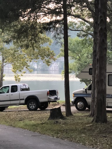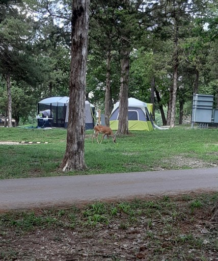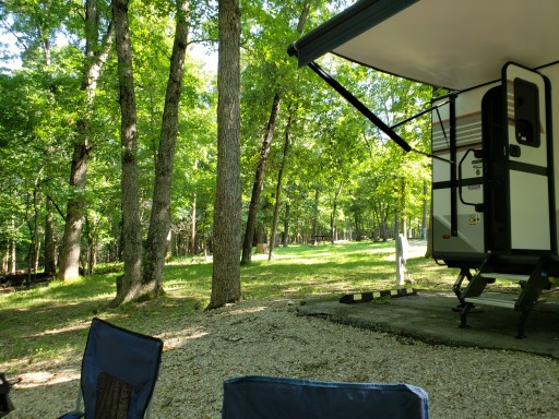 Spacious paved sites with elec only, picnic tables, fire pit. Our relatives that camped with us needed 50 amp and room to turn in with a large gooseneck and their options for sites were limited. Beautiful view of lake and lots of birds and deer. Short walk to the marina where we were able to rent a boat slip for $10 per night. Grounds and bathhouse were very clean.