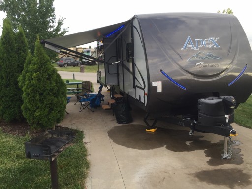 Stopped here for an overnight on our way through Kansas City. What a pleasant surprise. Extremely nice staff, lovely park. Our site was on a hill but tiered to be perfectly level. Landscaping provided privacy. Near highway but noise was not a problem at all. Will definitely return for longer stay if back in area.