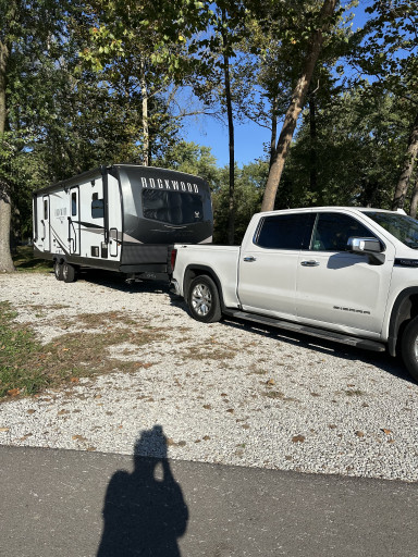 Our GPS could not route us exactly to the park. We were directed to baseball park. The camp host saw us from a distance and took pity on us. He drove to us and said follow him because We couldn’t see the campground. It was a 3 day weekend and every spot seemed taken. Some spots are side by side. Great! If you are camping with close friends and family. Our first night, an older 5th wheel came in at 2 am near us. He finally settled down around 3am. The flies were unbelievable. I bought fly spray for us and shared with a neighbor. We left on Thursday morning, but by then, I was comfortable and the park was quiet and actually pleasant. The bathrooms were clean. The laundry was small but usable. There is no store or gas station close by.