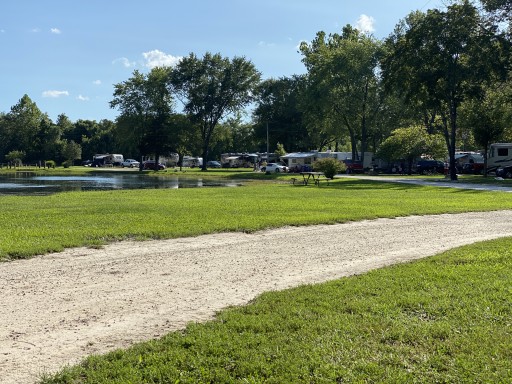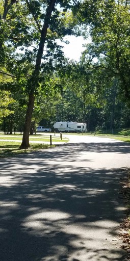 Nice park with lots of activities available. We had electric only site and it was fairly flat and shady. I really liked this park but wish they would add another dump station. There are 209 camping sites and only one single dump station. Quite the bottle neck on Sunday afternoon and the narrow roads and sharp turns make it hard to maneuver your camper through the dump station.