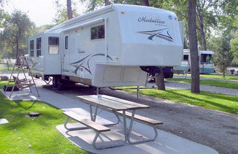 Beautiful grounds, clean RV Park, great pull throughs, bathrooms and showers were very clean, walking distance to trails and Yellowstone river, has a miniature golf course, gift shop, friendly staff, well worth the stop. Nicest KOA RV Park we have seen.