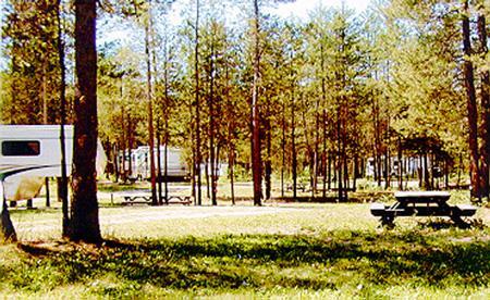 My mistake for staying here in attempting to get close to Glacier and save a buck or two. This "campground" is not suitable for large RVs. The sites are narrow with trees on all sides that are not trimmed to allow anything over 12 ft. tall, with any slides, or definitely with any awnings to comfortably fit without damage. The sites and roads are basically dusty bare dirt and poorly maintained. There are no amenities other than showers (dirty) and laundry, with no cable, or sewer hookups, but several over-the-air channels are available. Trains and barking dogs woke us up almost every morning.