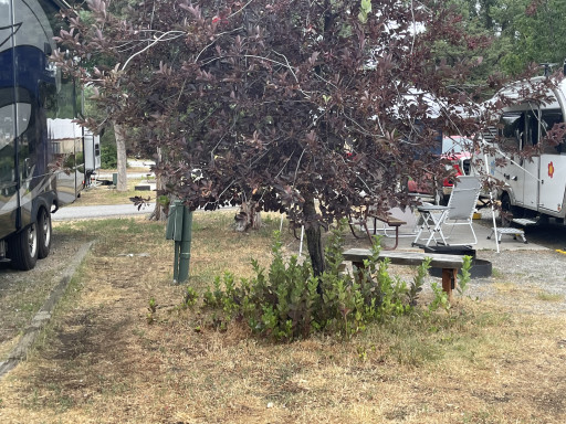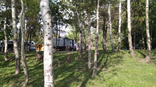 Worst campground I have ever stayed in. There was a tree stump at edge of site and tree on other side. Had to try and maneuver around a too narrow road to get trailer facing the right way after following instructions that had me facing the wrong way. Sewer was at rear of trailer and had to use 2 hoses stretched to the max. The site was only grass and looked like an after thought. Cottonwood trees were abundant. Not their fault, but added to my frustration. Way too expensive at 59$.