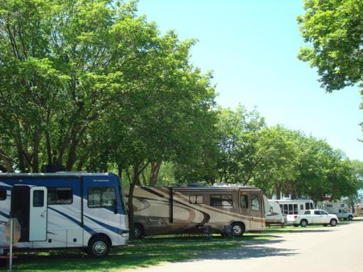 We stayed 2 nights early June 2021 in a pull through long and wide enough for our 40 ft Class A. They even provide a separate adjacent site for your towed vehicle. Staff very helpful and friendly, and constantly keeping the place clean and tidy. Although this is a very large park that also has mobile homes and a school bus barn on the same property, that is not a problem. The nearby main road (very busy in the day) does quiet down at night, and you may hear a few planes take off. It was warm during our visit and the pool was busy. Someone cleans the pool continually, too. Would stay there again.