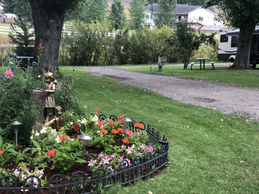 You can tell the owners love their park. Even though it's close to the highway, the flowers and yard art add a lot of charm to the park. We've come from Denver and have been camping through Wyoming and Montana. This is by far the nicest campsite we've stayed at. Sites are roomy, trees for shade, and facilities are clean and well maintained. Locally made items are available in the gift shop.