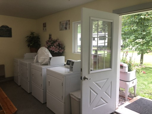 Beautiful park flower beds with yard art at each site. Clean showers and laundry. Because of mature trees it is very cool in a hot summer. Highly recommend and will return