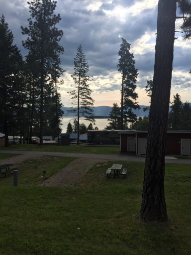Great view of Flathead Lake and very nice staff. We stayed with a group of RVers and they let us use rec center to eat in on a rainy night. Paved roads with grass pads. Worth another visit.