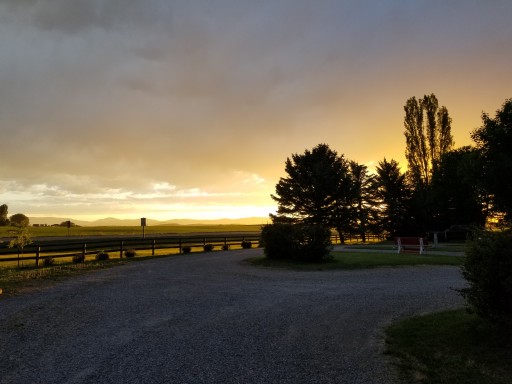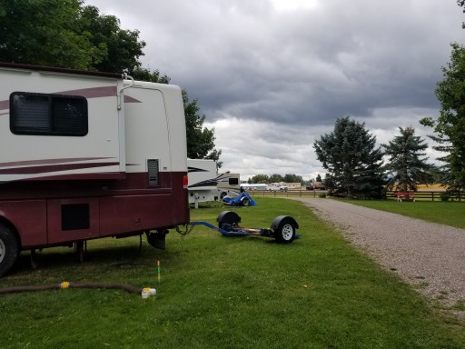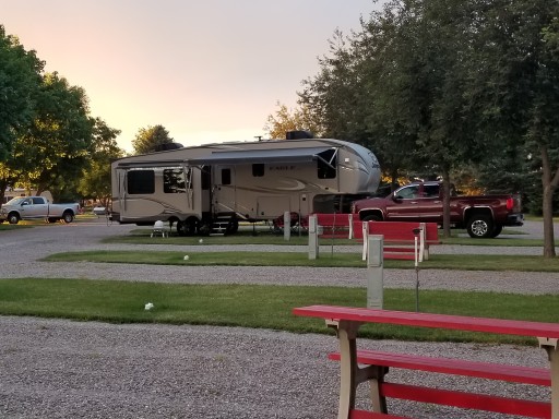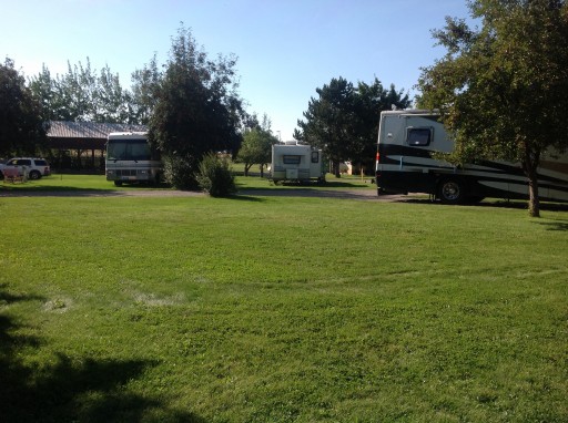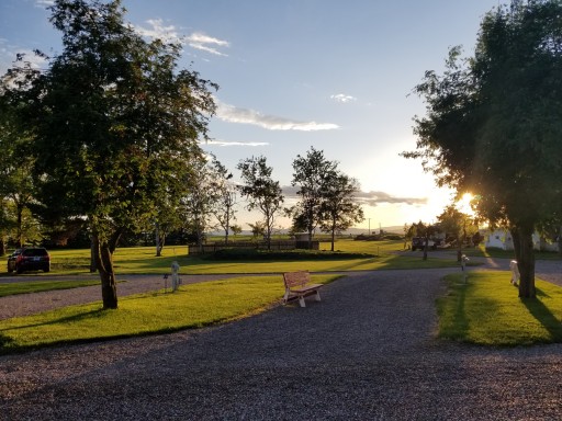 This is our 23rd. Stop on our tour of the west coast. Exceptionally clean. The owners/hosts are very attentive to the grounds and your stay. They are private yet friendly and if you have a question, concern or need they are on it. They are pet friendly and have a clearly marked area to walk your pet. The park is a perfect size, you are provided a large grassy area with a bench that turns into a table. We have a full hook up (30amp) and have site #15. This is an end spot which has a beautiful view of the mountains BUT your also closest to the main road (93) which tends to be a bit noisy. There is a large separate area for tenters and a park area for children. Any size motor home will fit and if you are pulling anything that goes beyond your site they have an area to park it. Very safe and we will return.