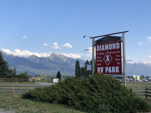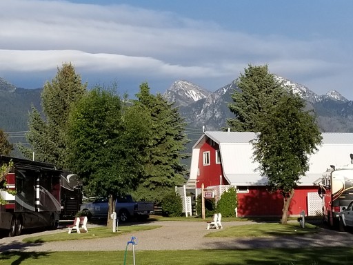 It’s not a large RV park. It’s cozy. The mountains of Glacier Nat’l Park are spectacularly within view. Dog friendly place, with acres to use the “chuckit”, and a spacious dog walk area.