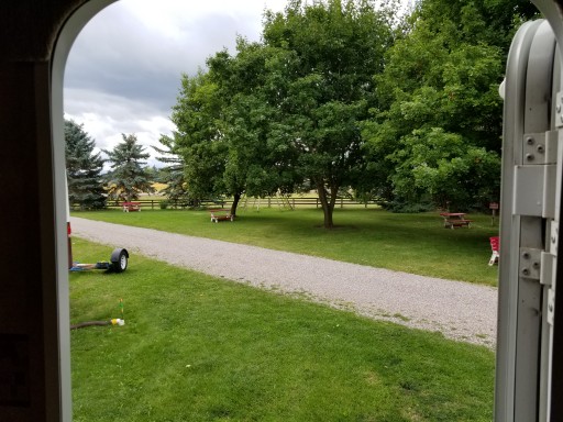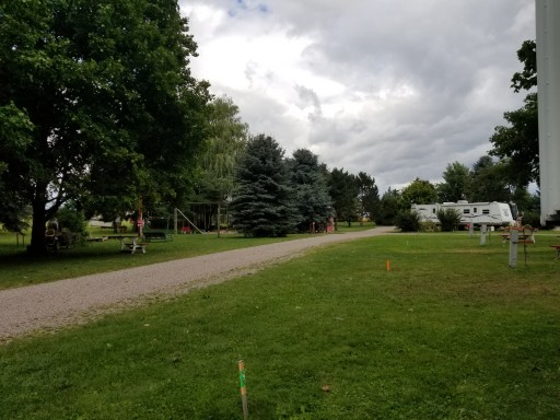 Beautiful well-maintained lawn. Grassy sites. 30 and 50 amp sites. Sites very close to each other, free firewood. Shared fire pit, small playground for kids. Quick and easy check-in/check-out.