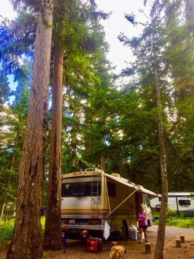 Stopped for one night, easy in and out. Clean beautiful setting, lovely lake with some site at lakeside. Resident camp host available. Only reason we give it 4 star is lack of water at site.