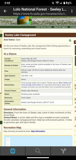 Beautiful location. Limited spaces, 29. Very good swim areas. $20 a night. Lovely lake named after my ancestors. Thank you Jasper Seeley!