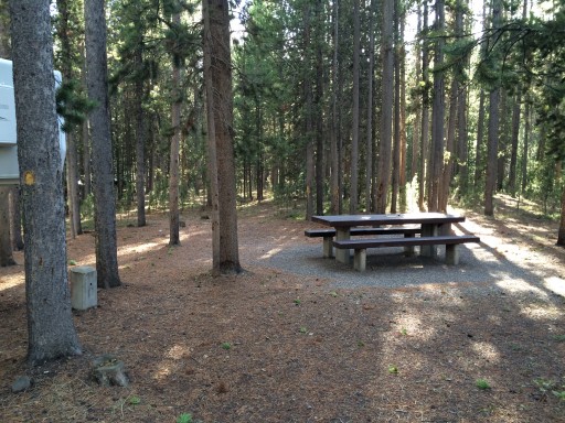 Only reason not 5 stars is there is no sewer hook-up and no dump station which limited our stay. Loved the setting. Heavily treed and walking distance to the lake. Saw deer in campground right outside our window when campground was not full. Hosts very friendly and helpful. Close to Yellowstone west entrance. We would stay here again.