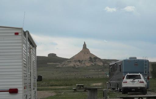 We enjoyed our stay here at Chimney Rock. The train ran all night but we had the air on and you didn’t hear it. We stayed here in a 30ft Class A with a tow, perfect fit.....perfect view we were in site #8. Our down sides were there wasn’t any shade and we enjoy sitting out at night but we couldn’t, due to the mosquitoes, even with bug spray, however we sat in the captain seat and passenger seat and enjoyed the view. They even light up Chimney Rock at night, so beautiful. They have a great trading post, you can even eat there. The employees were fantastic. Great for overnight stay, but we did two and went and discovered Scottsbluff National Monument the following day. Well worth the stop for us. Happy trails!