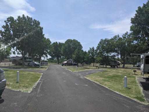 We found this on the app and are glad we stopped. Lots of great spots, from electric to full hookups with a dump and potable water station. Super affordable, only $20/night for just electric hook up. Lots to do, general store, restaurant, playhouse, pool, wagon tours, museums, activities, hiking etc. Big spots with fire pits and clean shower house. I'd definitely recommend this one!
