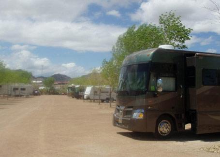 Sites are long enough and wide enough for our 39' M.H. with 3 slides, and toad. Plain gravel but level enough. Close to north end of death valley. Tried to get 3 nights but told I could only have 2. We drove by the third morning and they were not anywhere close to full. ? Also pool is not heated, and quite cold. Hot tub was very merky so didn't try it. Road noise not too bad at night.