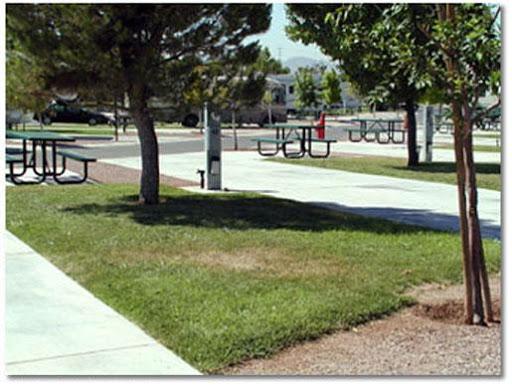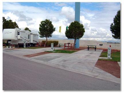 All the sites are paved, well maintained grassy area and 24 hrs. Security. In the city of Las Vegas shopping center on the corner and the strip only a few mins. Away.