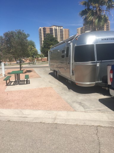 This park is really nice, the resort is a little dated but there’s everything you would expect from a resort. Two nice pools and one hot tub, one pool and the hot tub is 18 and older which we loved! There is a cafe restaurant, book exchange, convenience store, free mini put, fenced in dog areas, cable, gym and lots of washrooms/laundry areas. The spots are small but huge for Las Vegas when your close to the strip. Spots with grass and closer to the club house cost more. The strip was a 10min drive and Frémont St is 20mins. We felt very safe here, gated and tons of surveillance. Our only complaint was the molasses slow wifi.. this is a resort and is expensive! They can afford to offer lightening fast wifi but it’s painfully slow. We spent one night at Caesars Palace and we’re so thankful to have fast wifi again! Also we were yelled at for driving too fast but the speed limit is 10mph and we had our cruise on so I think the security guard was power tripping. Other than that it was great!