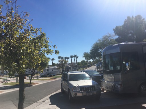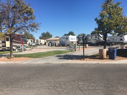 My last review was for a premium plus site. This review is for a deluxe site. We stayed in a deluxe site at the end of February. The weather was beautiful (mid 70s). We had no problem pulling in as it was a pull through. The site was level and close to the clubhouse and laundry facilities. We really enjoyed our stay. The pool was open and we enjoyed that also. We have also stayed for a night last July and yes it gets very hot (obviously because it’s Las Vegas). If you stay during the summer be prepared, especially if you have dogs. Their paws can and will burn on the hot ground. Make sure you bring a wagon or some protection for their paws. My favorite time to stay is February-May as it isn’t as hot most of the time. We love taking evening walks and meeting all the nice people sitting outside. This is one of my most favorite RV resorts.