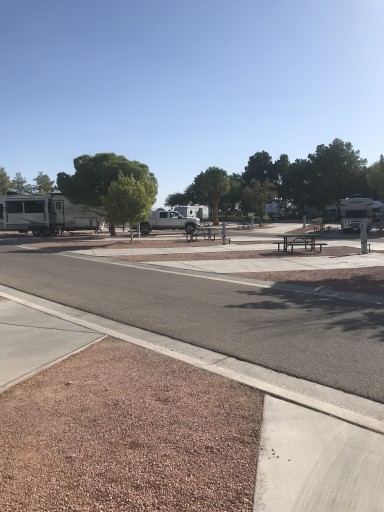 Nice clean park, most spaces have a lot of room between them. You set on a concrete pad and some have a pad to park your toad. The pool was nice, part of it was shaded and the other part sunny. The bathrooms and showers were clean. Although a couple of them could have used an adjustment on the main door. Just had to wiggle the door to get it to lock. Close to stores, restaurants, and casinos. Would defiantly stay again.