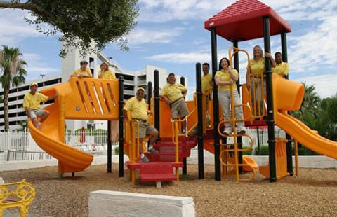 Huge parking lot is all this is which is fine but incredibly hot. Get a space closer to the clubhouse or on the back right by the big parking garage. Car alarms will go off all night but the big parking garage makes for all day shade. There is no wifi for the rv park, they got rid of it a in June 2018