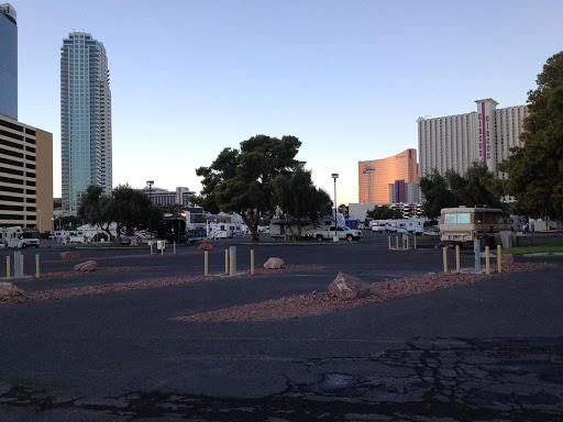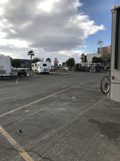 This is a large asphalt and cement parking lot with hook-ups. But hey, it's on the (lowerend) of the strip and since most of the casinos are now charging something like $15 an hour for regular car parking...this space is a deal. Park your RV and then walk, train, Uber, Lyft, or taxi to the new part of Vegas. We have a dog and there are very few spaces for the dogs to do their business. (By the way, pickup after your dogs people).