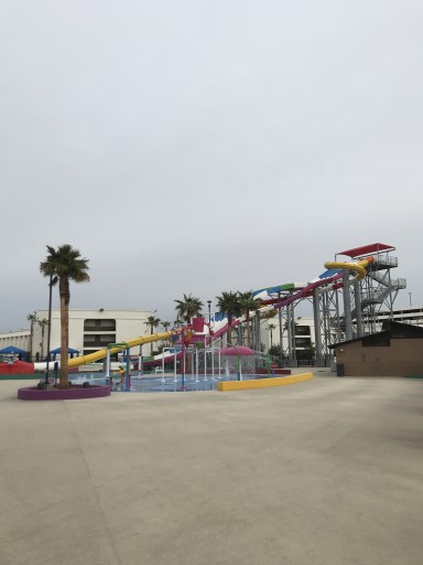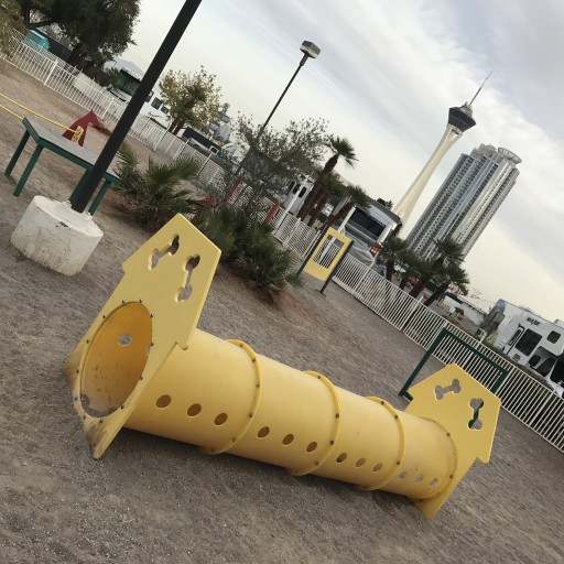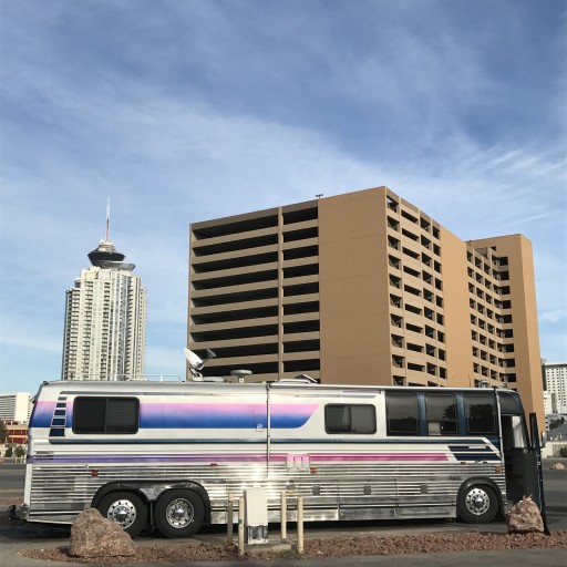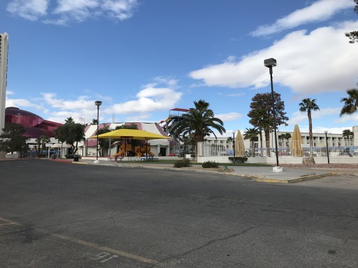 With not too many options for RV parking, this was a good option for us. We wanted to be able to walk to the Strip and have easy parking access. Circus Circus provided a basic parking lot with full hookups plus decent bathrooms with hot showers. We were put in a back space in the corner of a fairly empty lot for our 2-night stay. Right away, we didn’t feel like there was much security (although we did see security riding a bike once in the early morning) and even saw a guy jump the fence shortly after we arrived, saying he “didn’t want to walk around” to the entrance. I would not have stayed in my camper alone without my husband or a friend. Not an impressive park, but reasonably priced.