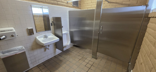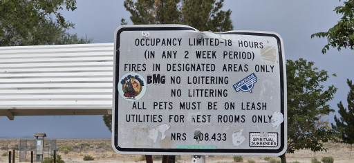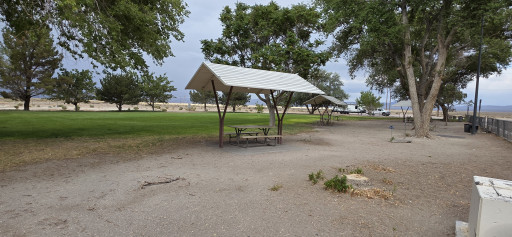 Everything is as reported a few years ago...free parking, level RV area, picnic tables, shaded grassy area for the kids to stretch their legs, dog park with several openings but no gates, so keep an eye on your fur babies, clean restrooms with flush toilets, dump station with potable water. All free. 5 bars of 5G AT&T. 18 hour stay limit. Sign on the highway just before the entrance says "No Trucks" with a picture of a semi. Thank you Nevada DOT.