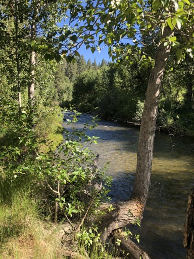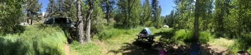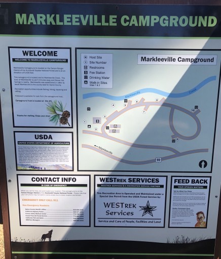 Less than 1/2 mile south of Markleeville, CA on St Rte 89, narrow road down to campground and tight tiny loop 20 ft MAX, sites 1-5 along creek, lots of shade at most sites, sheltered but still gets breezy, road is close enough to hear traffic but is seldom traveled
