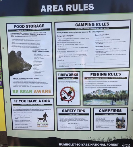 Picnic benches, fire pit, & bear box at each site