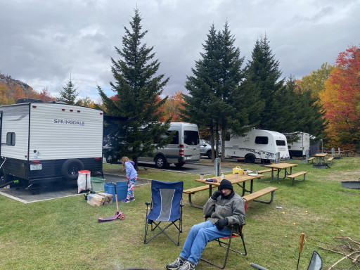 Small 7 spot back-in campground as part of parking area of Echo Lake Beach. Three way hookup at each site, fire ring and picnic table. Spots are narrow and typically won't allow for awning to deploy. But the campground itself is not why you are here. You do have swimming, and boat rental at Echo Lake but will really enjoy this spot as a base for adventuring around Franconia Notch and My Washington area. Flume and Basin are within 10-15 minute drive, Santa's Village about half hour, and Mt Washington about 1-1/2 hours driving. Lots of nearby hiking, climbing, and stuff for kids. Kind of odd having the campground attached to the big parking lot but after the beach closes the whole place is yours. Would have given five but no bathhouse and narrow parking. Spaces will fit large travel trailers, fifth wheel and larger RVs.