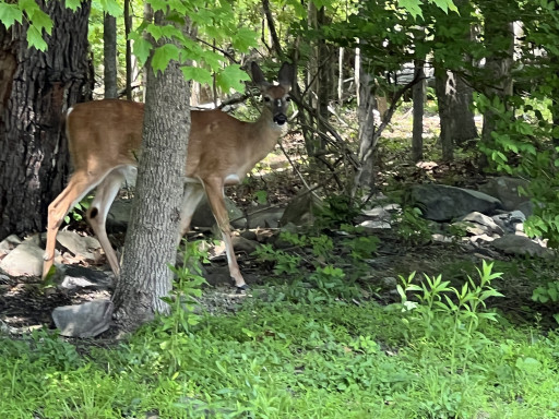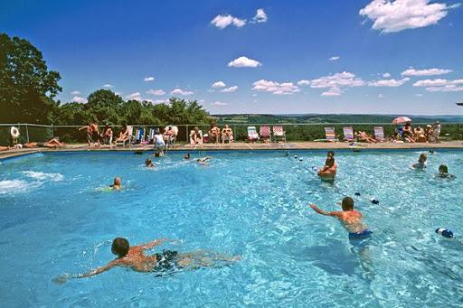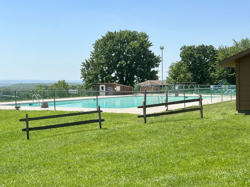 First time here. Two night quiet stay. We were in site #69 back in. Gravel site. There is a fire ring and picnic table. Woods behind us. Nice campground for children; there are goats, cows, pony and ducks. I enjoyed watching them. There are quite a few activities, if you are there on those dates, the office gives you a calendar at checkin. Nice pool, play area and doggy park. Beautiful views from doggy park. A bit pricey $79.00 a night but they accept Passport America so we received 1/2 off. Close to High Point State Park. We stayed here in a Class A with a tow, plenty of room. Nice Stop, everyone very friendly.