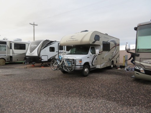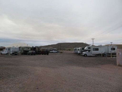This is what the folks at RVtravel.com have been asking for, $21- (up from $17- on highway signs) with 50A and FHU's. Easy in, easy out, mostly level sites. Five 'AirBnB' rental rigs and two TT's (probably employees) that have been long term. Gravel everything except dog walk area, with dump station adjacent. Grocery store and Casino look about 150 meters away, to the South and SW of RV area. This is a great spot for one night!