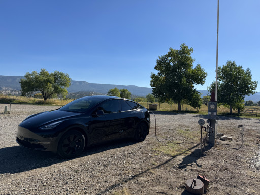 Friendly Host and he said that $10 is good for 1/2 fill up of my Tesla battery or $20 if I needed a full battery. There is a box at the edge of the parking area where you can put your contribution in an envelope. As there are no official EV stations within 80-100 miles this was a great find! This is a regular RV hookup Level 2 so bring your own charging cable.