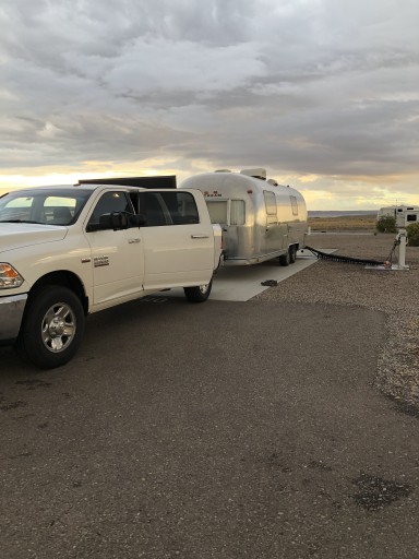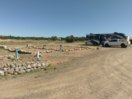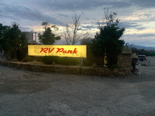 Convenient to interstate, Albuquerque, gas, restaurants (Pizza Barn rested #1 in NM), Smith's (Kroger chain), Wal-Mart, Walgreens. Dusty, level spots. No trees, pavement, fire ring, picnic table, or cable. Some long-term/full-time, but most transients are parked on opposite end in what appears to be a new section. Wi-Fi weak, esp. evening hours, of course. Some noise from interstate, but not unbearable. Price has gone up. Friendly folks.