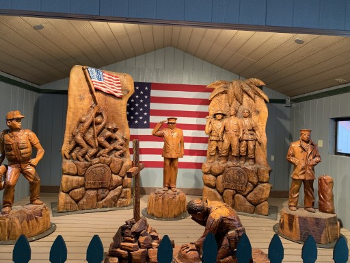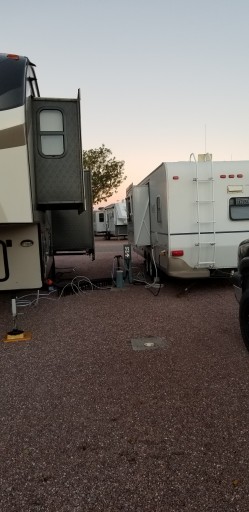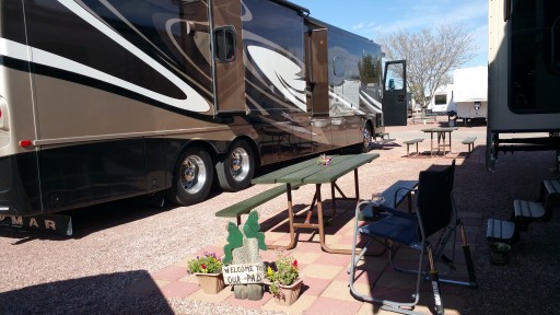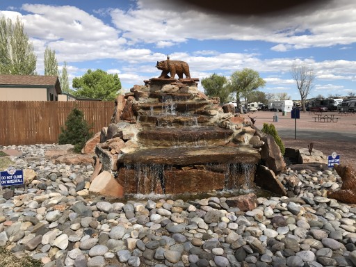 Unbelievable! About 100 miles from Gallup, USA RV Park’s billboard caught my eye—“active duty stay free.“ Being active duty military, how can I say no to that? Even after I retire I’ll patronize any park that supports our troops like this! The staff was friendly and welcoming. At check-in they give you a detailed park map with your site number, Wi-Fi password, cable channels, and other pertinent info. The store was amply stocked though I did not try the free-to-campers coffee. My site was clean, small gravel, level (didn’t even have to unhitch the toy hauler), and had great water pressure. The park itself was filled with quiet and respectful campers with only the sound of an occasional small prop aircraft flying over to land at the nearby airport (didn’t hear the interstate traffic). The meticulously detailed wood carvings featured on the website or more magnificent when viewed firsthand! Definitely stop by to support a company that supports our men and women in uniform!
