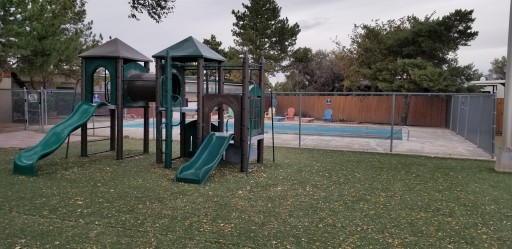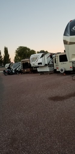 Very clean, fun putting green, kids loved it. Hope you like your neighbor, since you can reach out and touch them. Few trees. Easy in/out. Just fine for a stop over night. Located in the run down part of Gallup, both hotels on each side of RV Park are boarded up. Trains and planes are heard in the distance. Easy access off the highway.