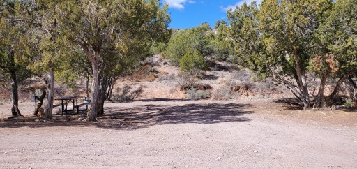 Nice rustic, dry campground. Sites are pretty level and all are partly to mostly shaded. One vault toilet that was very clean...for a vault toilet. Right off the highway and there is some road noise, but pretty much nonexistent after about 9 pm. Closest campground to The Catwalk, which is a must do. No cellular with AT&T, even with a booster. I don't think with any other server, either. Did I mention it's free. Thre was a large garbage bag in the toilet that we put our trash in; no dumpster or other trash bin. There was a little trash others had left behind. Can I make a plea? Aluminum doesn't burn. Stop throwing your beer cans in the fire. Someone else has to clean up your trash.