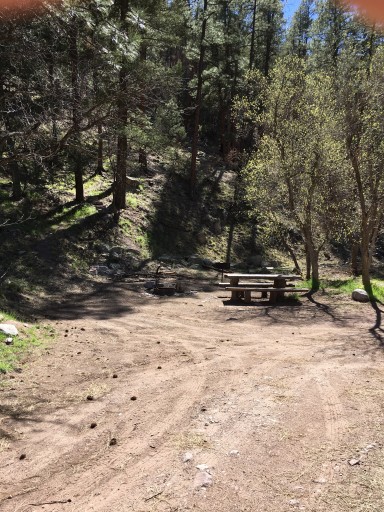 Didn’t stay the night, just a day visit. Cute campground with a vault toilet, tables and fire pits. Shaded sites big enough for a small travel trailer, pop up or tents. Looked like there were trails leading up the side of the mountain right from the campground. Best part is it’s free!!!